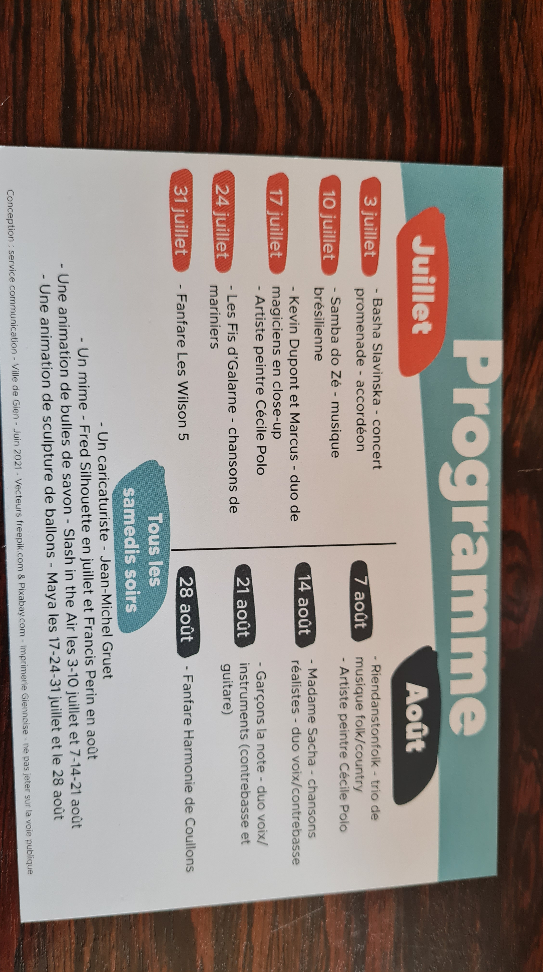 La tournée d’été du Mime FPAO continue août 8, 2021Uncategorizedfrancisperin Le Mime sera tout les samedi soir du mois D’août en déambulation de rue sur le quai de Loire de la ville de Gien . Il vous y attendra . venez le découvrir